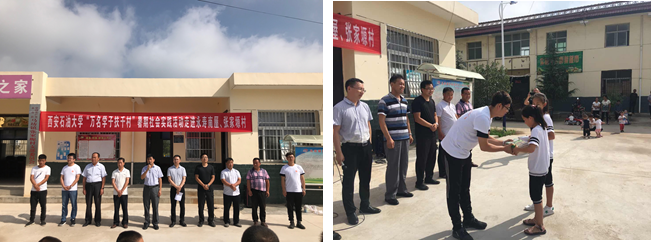 活动当天,在永寿县县委常委、统战部部长郭传海同志、团县委书记张磊同志及相关县委领导、张家塬小学校领导、beat365团委马琦老师、驻永寿县团委挂职干部潘德润老师、校团委、电子工程学院、理学院学生代表的共同参与下,于马坊镇张家塬村举行了beat365英国官方网站“万名学子扶千村”大学生暑期社会实践脱贫攻坚活动启动仪式,并由黄景鹏老师向留守儿童捐赠了图书等学习用品。