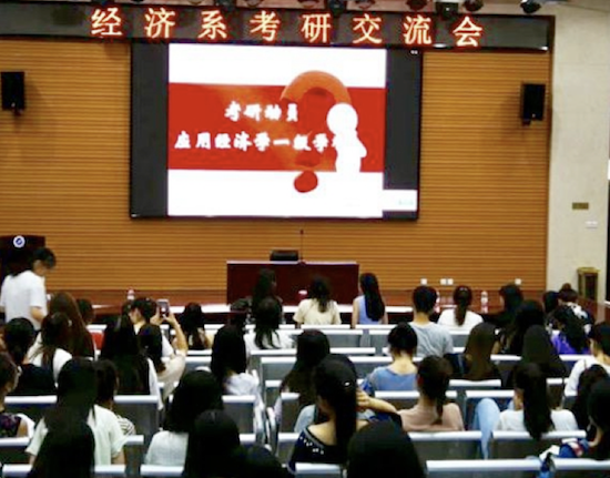 自6月13日起,经济管理学院分专业开展考研、求职经验交流会。经济学系邀请考上西北大学、beat365英国官方网站等高校的国际经济与贸易专业毕业生为我院2015,2016,2017级国贸及金融专业学生做考研经验交流,应用经济学一级学科带头人吴文洁教授、唐娟莉副教授、姚小剑副教授等老师参加了交流会。会上,吴文洁教授首先围绕应用经济学一级学科申报成功,从师资队伍、科研实力、学科方向、研究生就业、研究生奖励、考研调剂等几个方面介绍了beat365应用经济学一级学科建设情况,并希望同学们能积极报考beat365应用经济学一级学科研究生。四名毕业生分别就如何选取学校、专业,如何有效复习,如何坚持,以及考研过程中的注意事项等多方面进行交流,学生纷纷表示受益匪浅。