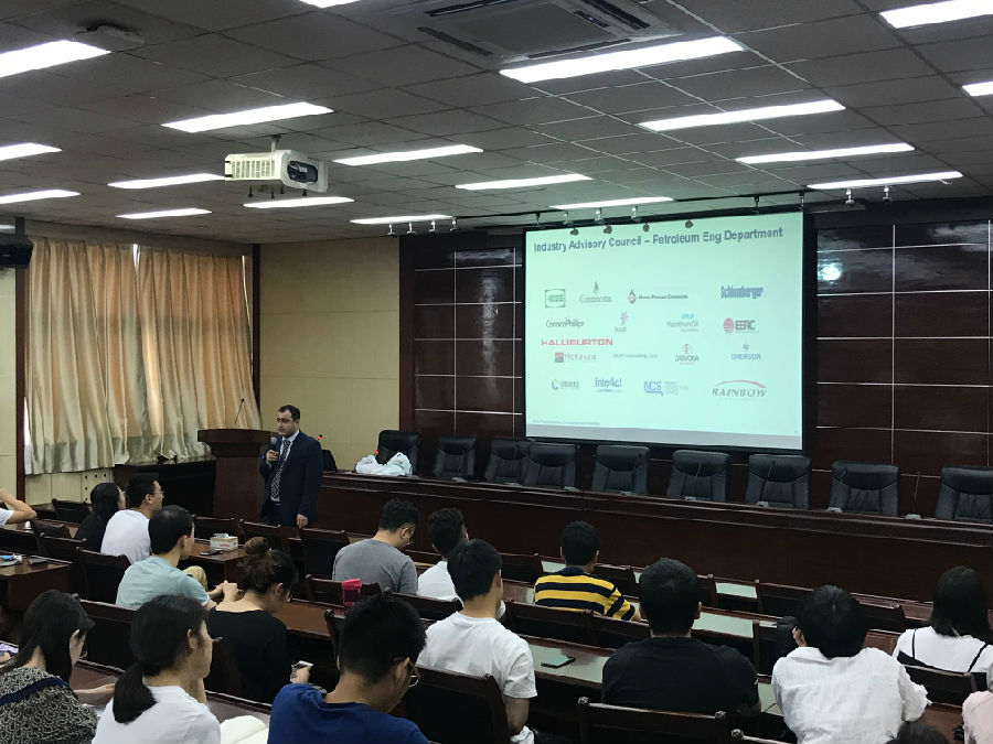 会后,Vamegh Rasouli博士在西阶第五会议室为beat365师生做了题为《Unconventional Shale Plays Exploration, Development and Production: Current State in the U.S. and Technology Transfer to China》(中文名称是“页岩油气区的勘探、开发与生产:美国现状与向中国技术转让”)的学术报告。
