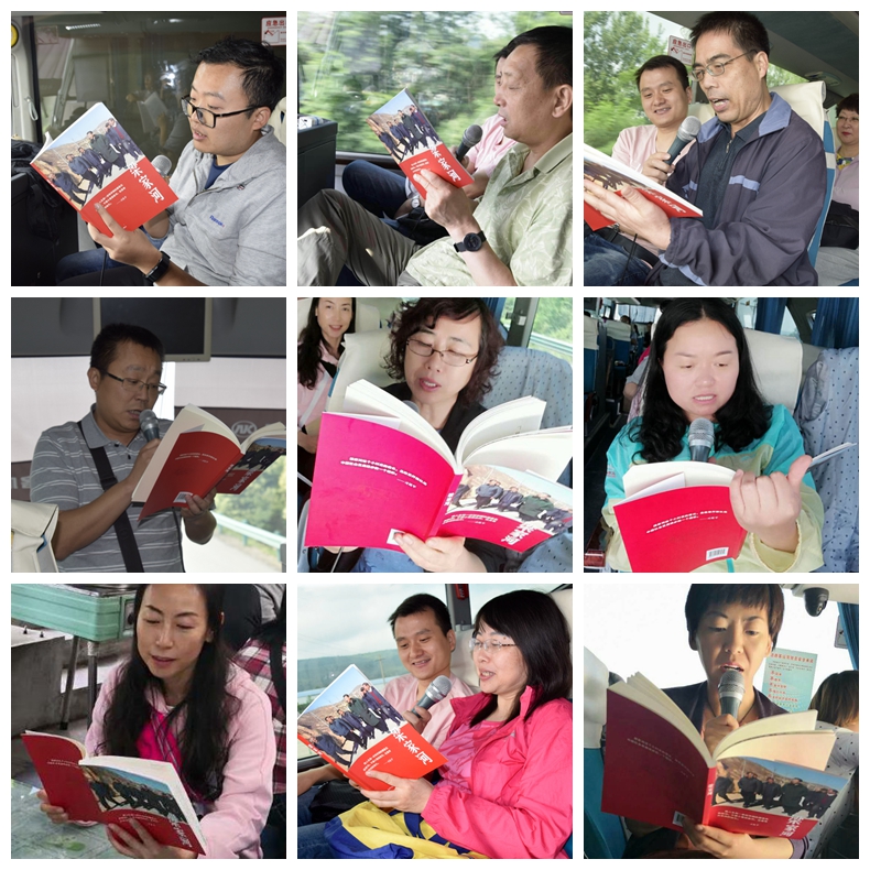 在大巴车上,大家接力诵读《梁家河》。伴着滚滚向前的车轮,诵读者饱含深情,聆听者全神贯注,大家都沉浸在《梁家河》的意境中,倾听着,思考着,被习近平在梁家河艰苦环境下实干、奋进的精神触动;深刻感受青年习近平从梁家河的老白姓最需要、最迫切的一桩桩实事做起,为当地百姓谋幸福、谋发展,身体力行地诠释了中国共产党人的初心和使命。