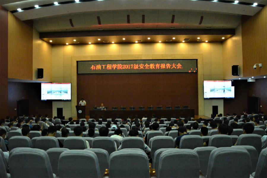 为增强学生安全意识,保证学生在校安全。5月30日晚七点,石油工程学院在beat365鄠邑校区弘石报告厅举办了“石油工程学院2017级安全教育报告大会”。特邀beat365保卫处副处长张永华老师为大家讲解安全知识,石油工程学院2017级辅导员孙浩哲老师及2017级全体学生参加了本次报告大会。