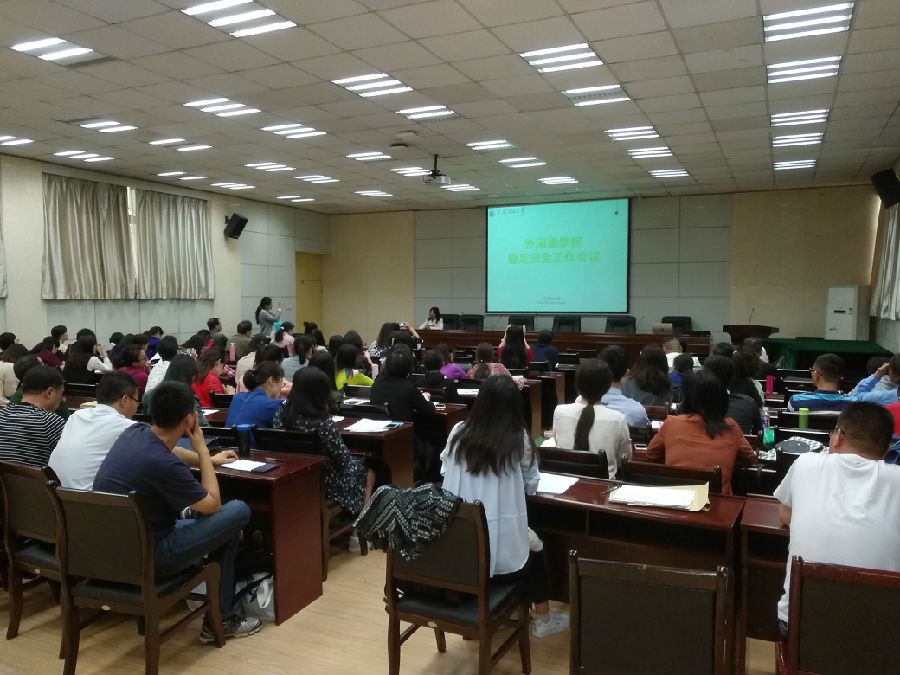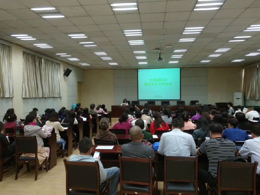 2018年05月11日下午,外国语学院稳定安全工作会议在雁塔校区会议中心第三会议室召开。会议由外国语学院党委书记廖敏主持,全体学生工作干部及全院教职工参加了本次会议。