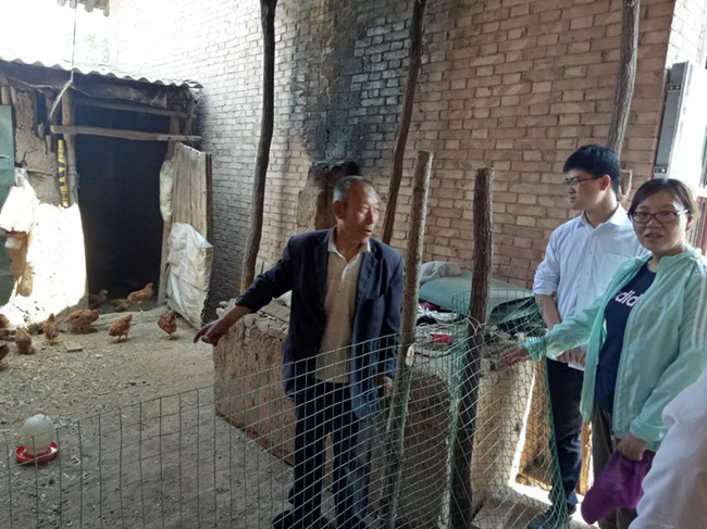 在帮扶对象杨民民家,袁书记一行查看了学院资助建设的鸡棚、牛和新购买的鸡苗,询问养鸡养牛饲料准备及预计生产情况,并鼓励他们积极开展养殖,通过学院帮扶和自己努力,提高经济收入,改善家庭生活。