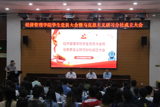 5月10日中午,经济管理学院学生党员大会暨马克思主义研习社经济管理学院分社成立大会在鄠邑校区经管人文楼118多功能厅召开。院党委书记闫大维、副书记赵海涛、副院长吴勋出席,各年级辅导员、党工办学生干部、学生党员共200余人参加。大会由学管办主任刘冰主持。