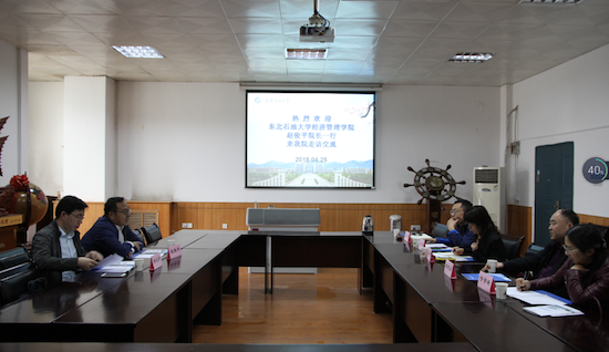 4月25日—26日,东北石油大学经济管理学院院长赵俊平和MPAcc中心主任李九斤等人来经济管理学院调研交流。座谈会于25日在雁塔校区二号教学楼1507和26日鄠邑校区3号院系楼209举行,经管学院院长王君萍、书记闫大维分别在雁塔校区与鄠邑校区主持座谈会。教授委员会副主任李志学、副院长吴勋、MPAcc项目负责人宁宇新等参加了会议。王君萍院长、闫大维书记对赵俊平院长一行来访表示欢迎。双方就院学科建设情况、研究生教育、本科生教育、师资队伍建设等情况进行了亲切交流,双方期望进一步加强沟通,加深友谊,推进两院各方面教育事业长足发展。