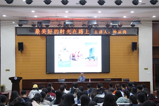 仲从尚先生讲述了许多分量满满的干货,他说在大学中首先要学会的就是要独立生活和处理事情,走出自己的平凡之路。学会合理安排自己的生活和学习,不能忽视学习的重要性,学习是一种习惯,无关年龄。可以懒惰,但请不要一事无成。对于社团,他认为社团活动有助于性格塑造,是打开人脉关系的一把钥匙。他鼓励同学们“多户外,少室内”,多去领略大好河山,不要宅在家里、宅在宿舍。关于宿舍关系,他说在最美好的时光遇见你,当然是要做一辈子的好朋友!至于同学们四年后的发展,仲从尚先生给出了自己诚恳的建议,为我们解决了不少疑惑。
