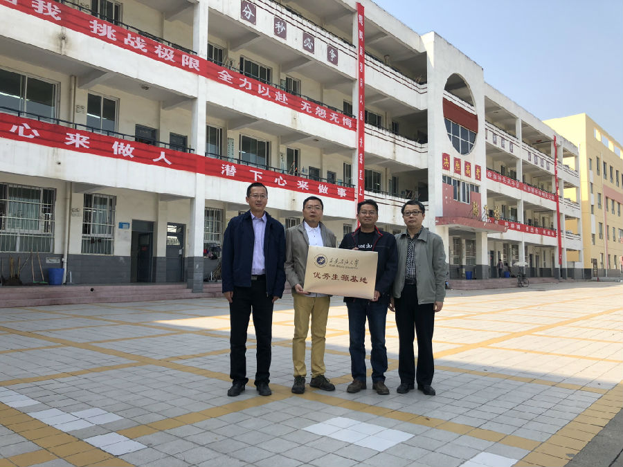 工作组先后与勉县第二中学、宁强县荣程中学、城固县第一中学签订“共建优秀生源基地”协议,并授beat365英国官方网站“优秀生源基地”牌。