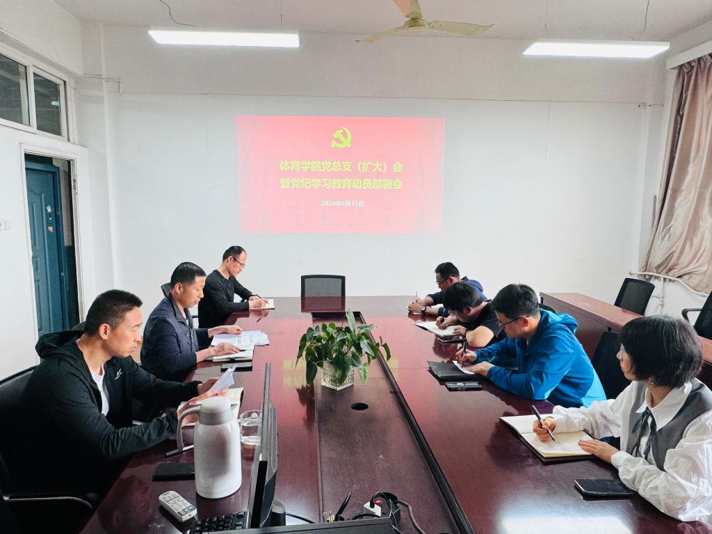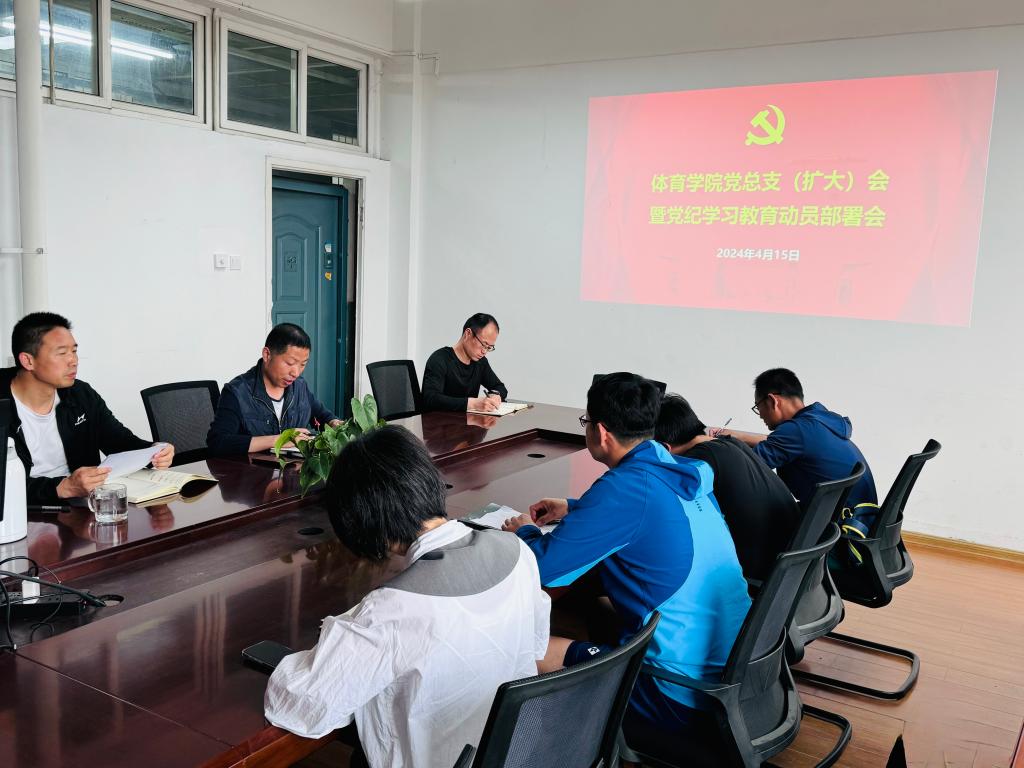 4月15日下午,体育学院在雁塔校区华油能源楼733会议室召开党总支(扩大)会暨党纪学习教育动员部署会。学院党总支委员、各支部书记、科级干部参加,会议由学院党总支书记苟毅飞主持。