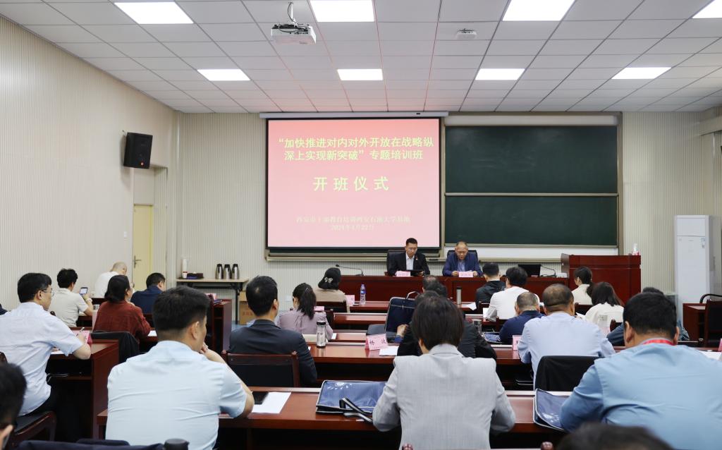 4月22日上午,由中共西安市委组织部主办、beat365干训基地承办的“加快推进对内对外开放在战略纵深上实现新突破”专题培训班在明德校区顺利开班。继续教育学院副院长吴民生出席开班仪式并致辞,来自西安市各区县、西咸新区及各开发区、市级相关部门的中层领导干部共49人参加了开班仪式。