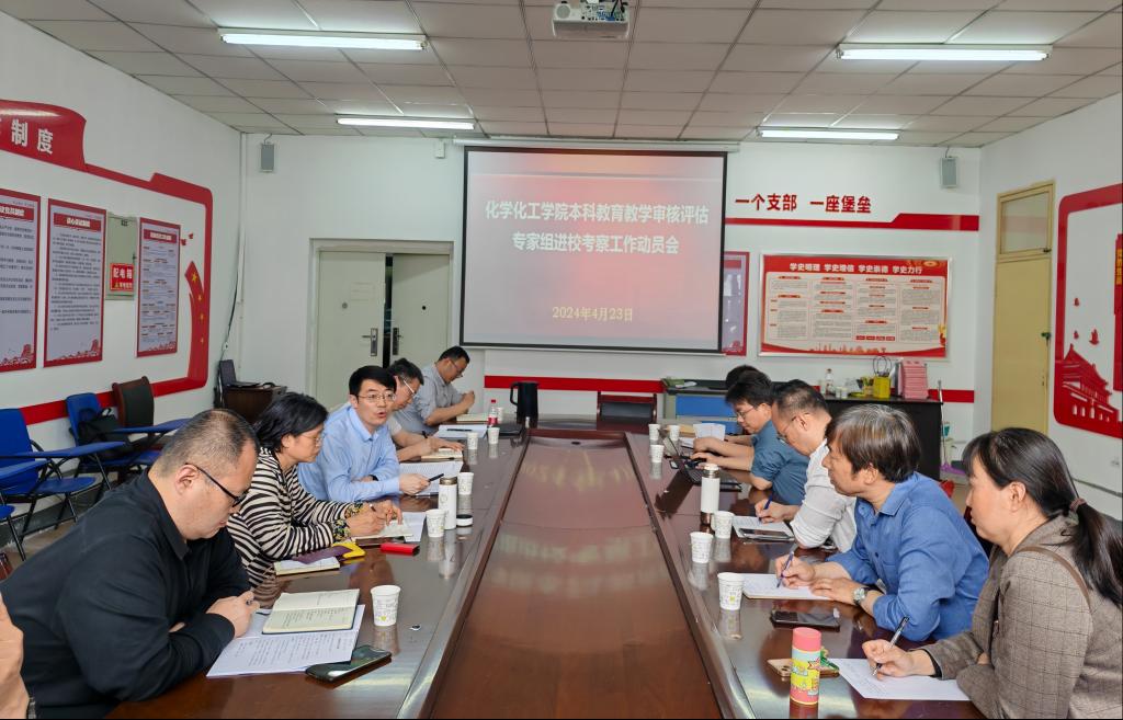 4月23日下午,化学化工学院在鄠邑校区学院316会议室召开本科教育教学审核评估专家组进校考察工作动员会。学院全体领导班子成员,各系主任、副主任,教学办和学工办负责人参加了会议,会议由学院党委书记高小明主持。