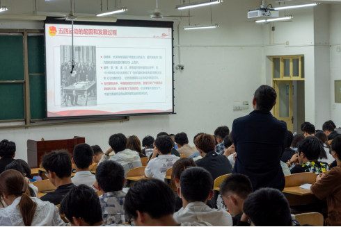 伴随着庄严的《光荣啊,中国共青团》团歌奏响,团课正式拉开序幕。黄景鹏通过丰富的历史资料向同学们详细回顾了五四运动的历史背景、起因、发展过程、历史意义以及产生的深远影响。他指出,五四运动是以一批先进青年知识分子为先锋、广大人民群众共同参与的彻底反帝反封建爱国革命运动,更是中国青年追求真理、勇于探索、敢于斗争的精神象征,它推动了社会进步,促进了思想解放,开启了民族复兴的新的起点,是中国新民主主义革命的开始。他强调,最好的纪念是继承和发扬。祖国的事业发展离不开青年,青年的成长和发展更离不开国家。要弘扬五四精神,始终牢记五四精神的核心内容,即爱国、进步、民主、科学。他希望,青年学生要不忘初心、牢记使命,始终坚定理想信念,自觉听党话、跟党走,树立远大志向,自觉把个人理想追求融入国家和民族的事业之中,锤炼高尚的品格,学好专业技能,提升过硬本领,增长能力才干,永保奋斗姿态,勇于创新和探索,投身国家能源建设,做有理想、敢担当、能吃苦、肯奋斗的新时代好青年,勇当实现中华民族伟大复兴的生力军和主力军。