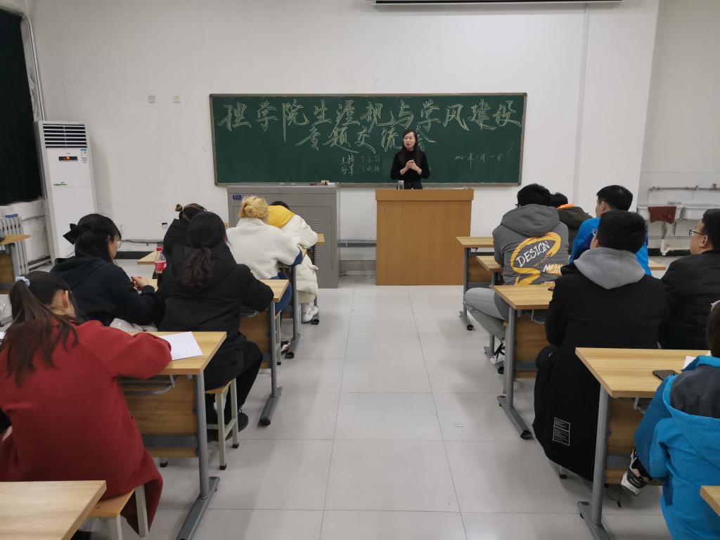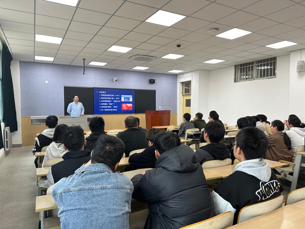 二、摸清底数,分类服务。学院坚持“一班一策、一生一策”,分类指导服务,切实推进毕业生考研工作。一是准确摸清毕业生考研底数。辅导员通过电话、微信、QQ等方式对毕业生考研意愿进行逐一摸底,全面掌握他们的目标院校、复习状态,建立工作台账进行全程跟踪。二是按专业需求,分类向毕业生传达考研经验。学院坚持开展“生涯规划与学风建设专题交流会”按照专业分批次邀请已经考研成功的学长学姐与毕业生们展开交流,通过交流帮助毕业生更好地做出考研专业与院校的选择。三是针对学生在考研数学、英语方面的薄弱环节,学管办组织专门的高数提升班、英语补习班强化学生考研基础。学院高楠老师坚持每周三下午为全体考研学生作一次考研数学辅导,风雨无阻尽显师者风范。全体学工干部分工不分家,常态化为同学们作考研咨询与辅导,有问必答、有疑即解,切实为毕业生考研做好咨询员、服务员、指导员。