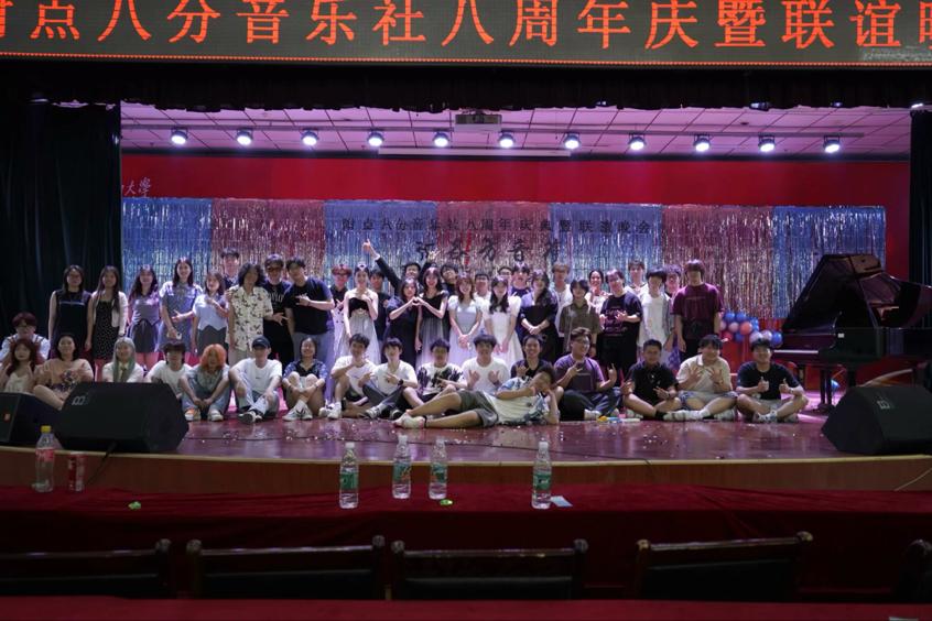 5月18日晚7点,石油工程学院附点八分音乐社在腾辉大学生活动中心举办八周年庆典暨联谊晚会。晚会邀请长安大学、西安建筑科技大学音乐社团学生代表、各院系文艺部学生代表、兄弟社团学生代表参演并观看。