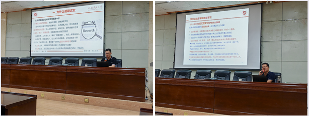 报告会上,倪维军老师以《访英留学体验与英国教育模式浅析》为报告题目,为大家详细生动讲解了在英国访学期间的成果和见闻,并对英国高校教育模式一些分析和看法;郑永老师以《浅谈文献调研与科技论文写作》为报告题目,为研究生们讲述了撰写科技论文的准备工作和撰写流程;梁拓老师以《研究生学位论文写作格式及规范》为报告题目,为大家讲解了研究生的学位论文撰写要点及写作格式容易出错的方面,并列举了一些常见问题并加说明。