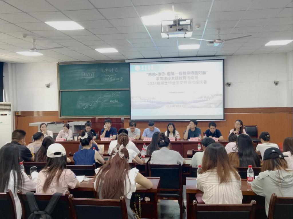 5月21日,经济管理学院在雁塔校区东阶201教室召开“感恩·传承·启航—我和导师面对面”学风建设主题教育活动暨2024届硕士毕业生文明离校座谈会。本次活动围绕“弘扬科学家精神,恪守学术道德,培育优良学风”这一主题,深入学习贯彻习近平新时代中国特色社会主义思想,全面落实beat365第三次党代会精神,讲好科学家故事,传播优良学风,引导研究生坚守学术道德与科研诚信,涵养优良学风。经济管理学院副院长李春霄,管科系赵需要,企管系黄聿舟,经济系唐娟莉,会计系侯晓靖、黄莉、郑蕊,研究生辅导员李政、阮添舜及各年级研究生代表30余人参加此次活动,活动由研究生辅导员陆昕阳主持。