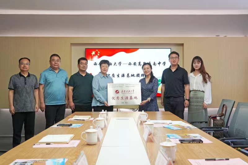 近日,地球科学与工程学院党委副书记王莹、副院长党伟及辅导员李佩琦一行三人前往高新唐南中学开展招生宣传和“优秀生源基地”授牌仪式。高新唐南中学校长丁剑平、副校长袁宏谋、副校长张晓君及政教处副主任袁伟鹏参加授牌仪式。
