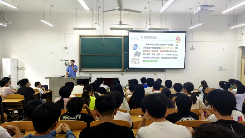 每年5月是高校学生资助“诚信教育主题月”,计算机学院2023级作为大一新生,紧抓开学前、报道后关键节点,利用学院微信公众号推送新生防诈骗、高年级案例警示、督促学生下载反诈APP提升学生反诈意识,防患于未然。同时,做好学生在校反诈意识长期培养,敲响日常警钟。于5月27日在鄠邑校区博览楼112教室举办电信网络新型违法犯罪防范知识讲座,讲座邀请到沣京路派出所郑昊警官主讲,学院2023级学生参加。讲座由学院2023级辅导员高嘉祺主持。
