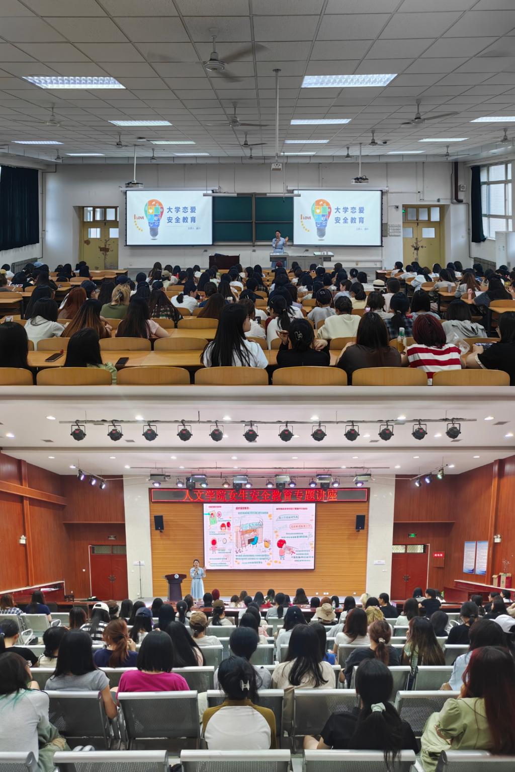 为了鼓励女生学子立志成才,加强女生安全教育,更好地关爱和保护自己,引导女生在学习和生活中树立远大理想。6月4日至5日晚,人文学院分别在博览楼A234、崇文楼118开展女生安全教育专题讲座暨节前安全教育年级大会,讲座由学院党委副书记盛丹主讲,2022级、2023级全体女生参加,2022级辅导员范嘉欣、2023级辅导员王凯杰参会。