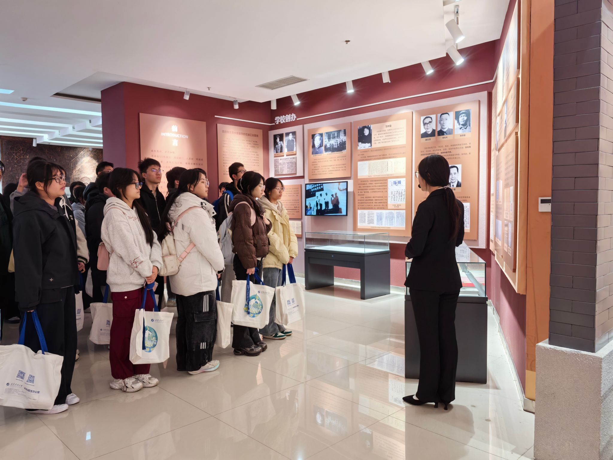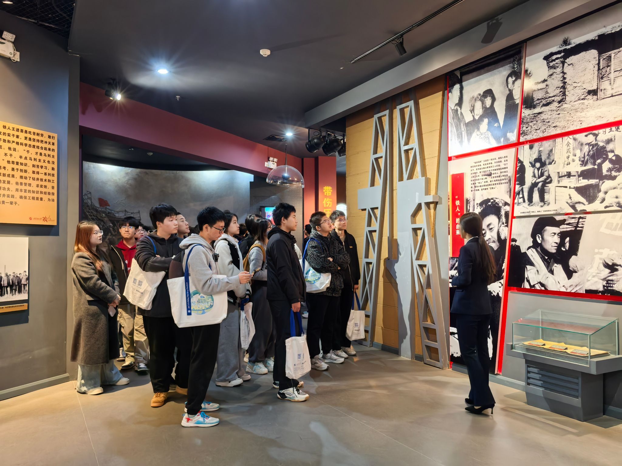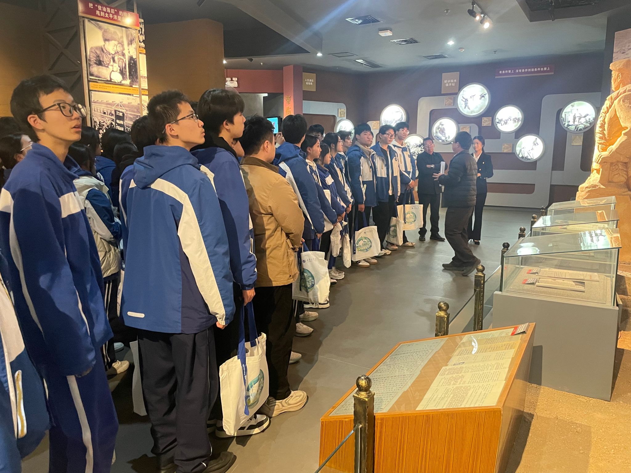 研学活动第一站首先来到校史馆和铁人纪念馆。在铁人纪念馆,通过讲解员细致的讲解,结合一幅幅珍贵的照片、一件件实物展品,五高师生深切感受了铁人的不凡人生历程,深刻领悟了铁人精神的内涵。在校史馆,跟随讲解员的步伐,五高师生认真聆听了学校的建设发展历程,透过一个个展板,一件件历史实物,大家学习了先辈们筚路蓝缕艰苦办学的奋斗精神,专家学者潜心育人的优秀事迹和毕业生扎根祖国大地回馈社会的爱国情怀,深切感受到beat365的校园文化和学习氛围,也激发起内心对大学生活的向往和憧憬。