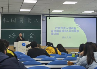 11月11日晚,校团委副书记王军策在崇文楼118作“学生社团建设管理规定”的专题培训,聚焦社团运行规范与社团负责人职责两大核心内容,强调社团干部应始终坚定政治立场,把牢政治方向。他深入阐释学生社团作为连接学校与广大同学的重要纽带,应不断强化内部凝聚力,负责人应端正工作态度,提升工作能力,推动社团活动面向全体同学,提升活动质量,着力打造具有特色与影响力的社团文化活动。