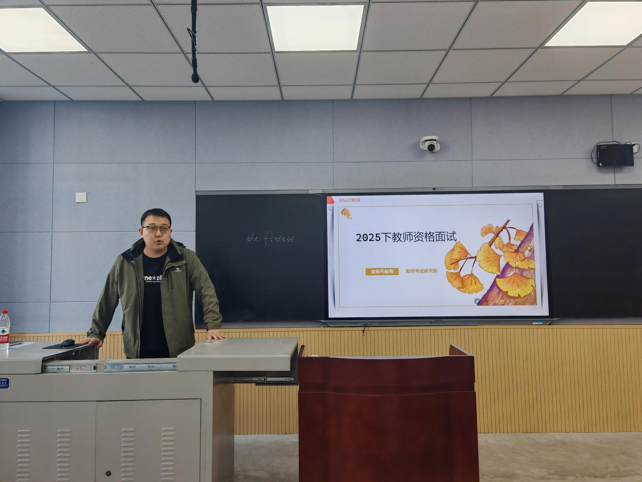 为助力广大学子提高教师资格证面试技巧,进一步提升就业竞争力,11月27日,外国语学院在鄠邑校区A211举办第19期学工讲坛,邀请到金标尺教育张迪老师担任主讲。