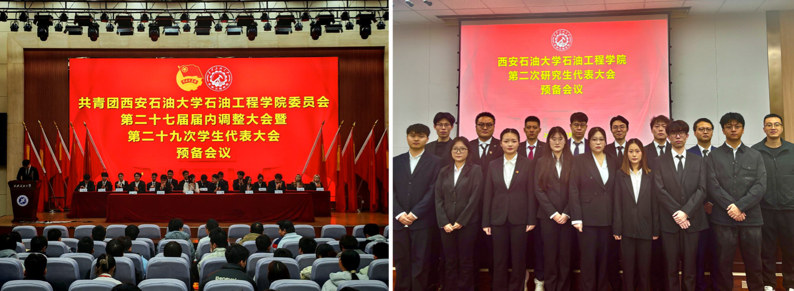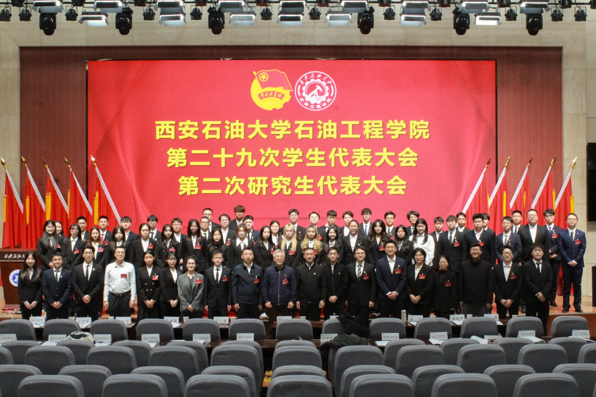 12月10日,beat365英国官方网站石油工程学院第二十九次学生代表大会暨第二次研究生代表大会在鄠邑校区弘石报告厅胜利召开,学院党委书记司马文龙、校团委副书记王军策,学院党委副书记艾二鑫出席大会。校学生会、校研究生会、兄弟学院学生会代表受邀参会,学院学生工作办公室全体老师、各年级学生代表参加会议。