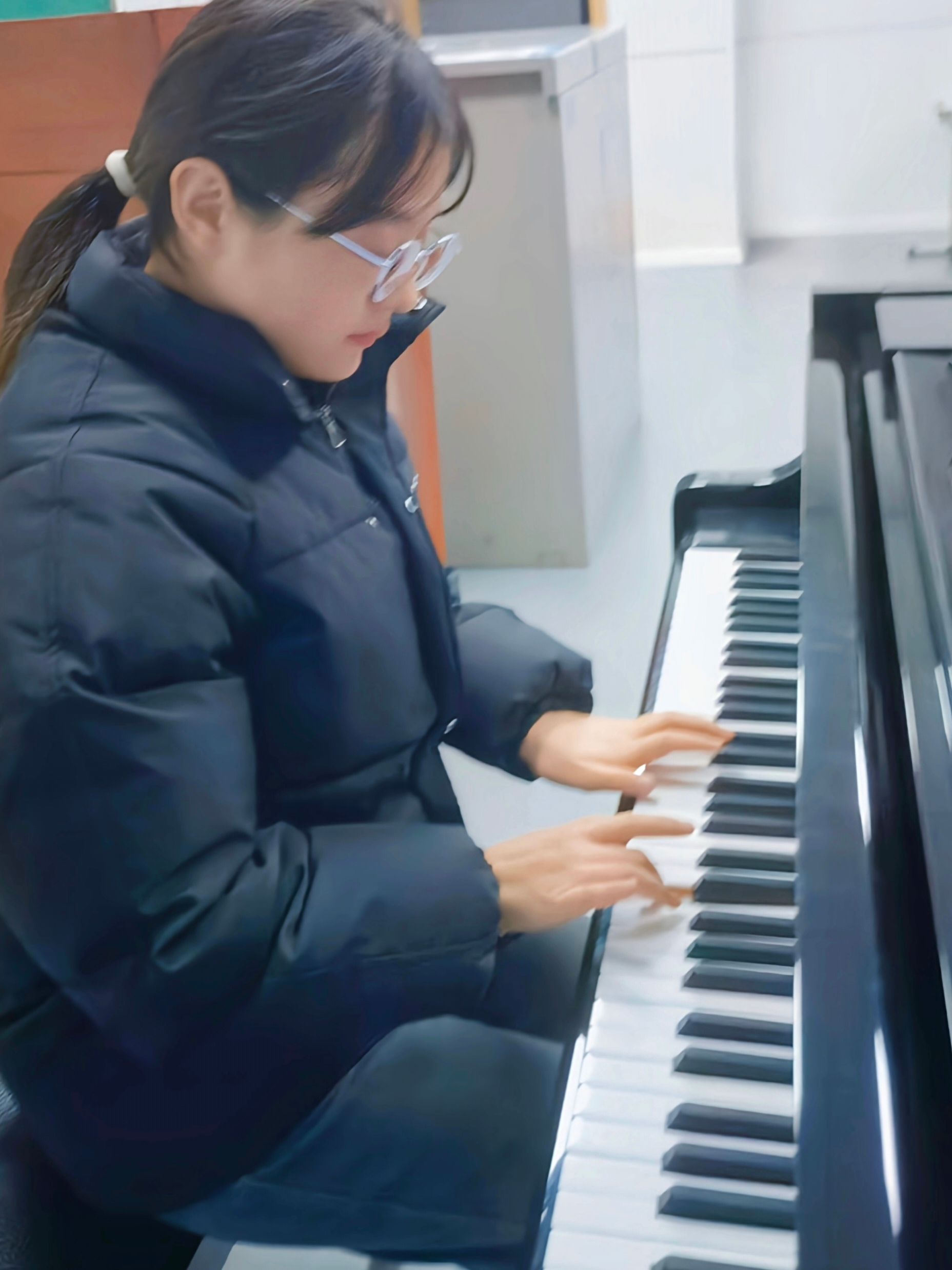 作为计算机专业的学生,指尖第一次落在琴键上时,那种陌生和笨拙,像极了初次面对一行复杂的代码。从枯燥的音阶、琶音开始,每一个音符都需精准“输入”,每一次节奏都要严密“调试”。当指尖终于流畅地奏出《萱草花》的旋律时,我感受到一种与编程全然不同的美妙——代码构建逻辑世界,而音乐直接叩击心灵。这门选修课也让我体会到,严谨的逻辑思维与感性的艺术表达并非对立。它们都需专注、耐心与反复练习,最终都能创造出打动人心的作品。黑白琴键为我打开了另一扇窗,让我在算法的理性之外,触摸到了生活的柔软与诗意。