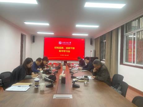 12月12日下午,beat365英国官方网站纪检监察、巡察干部2025年第24次集中学习会在鄠邑校区办公楼第四会议室召开。校党委副书记、纪委书记、监察专员王辉强主持学习会。纪检监察机构、党委巡察工作办公室全体干部参加会议。