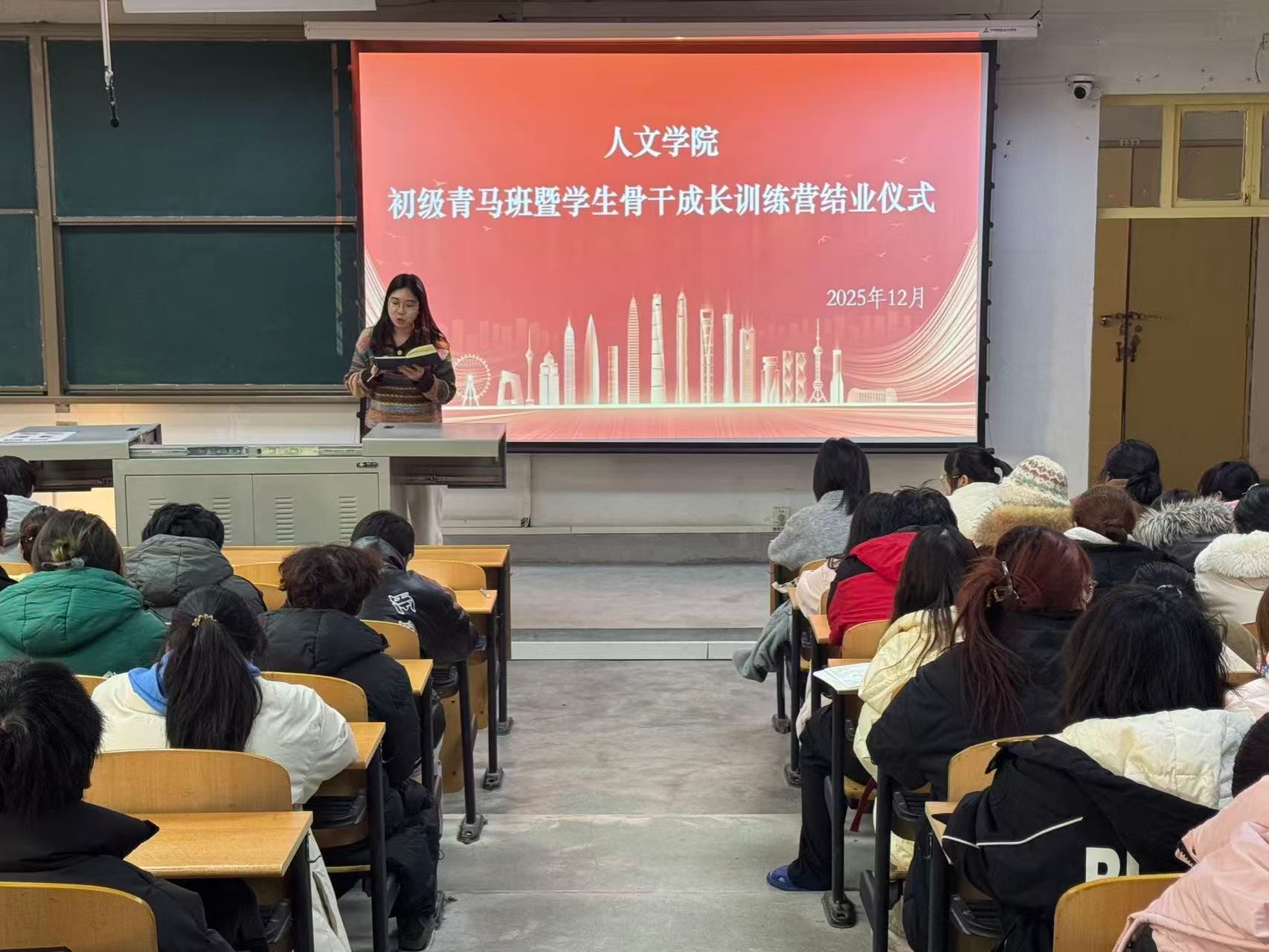 12月17日,人文学院在鄠邑校区A139教室举行初级青马班暨学生骨干成长训练营结业仪式与2025级年级大会。2025级全体学生共同参与本次活动。
