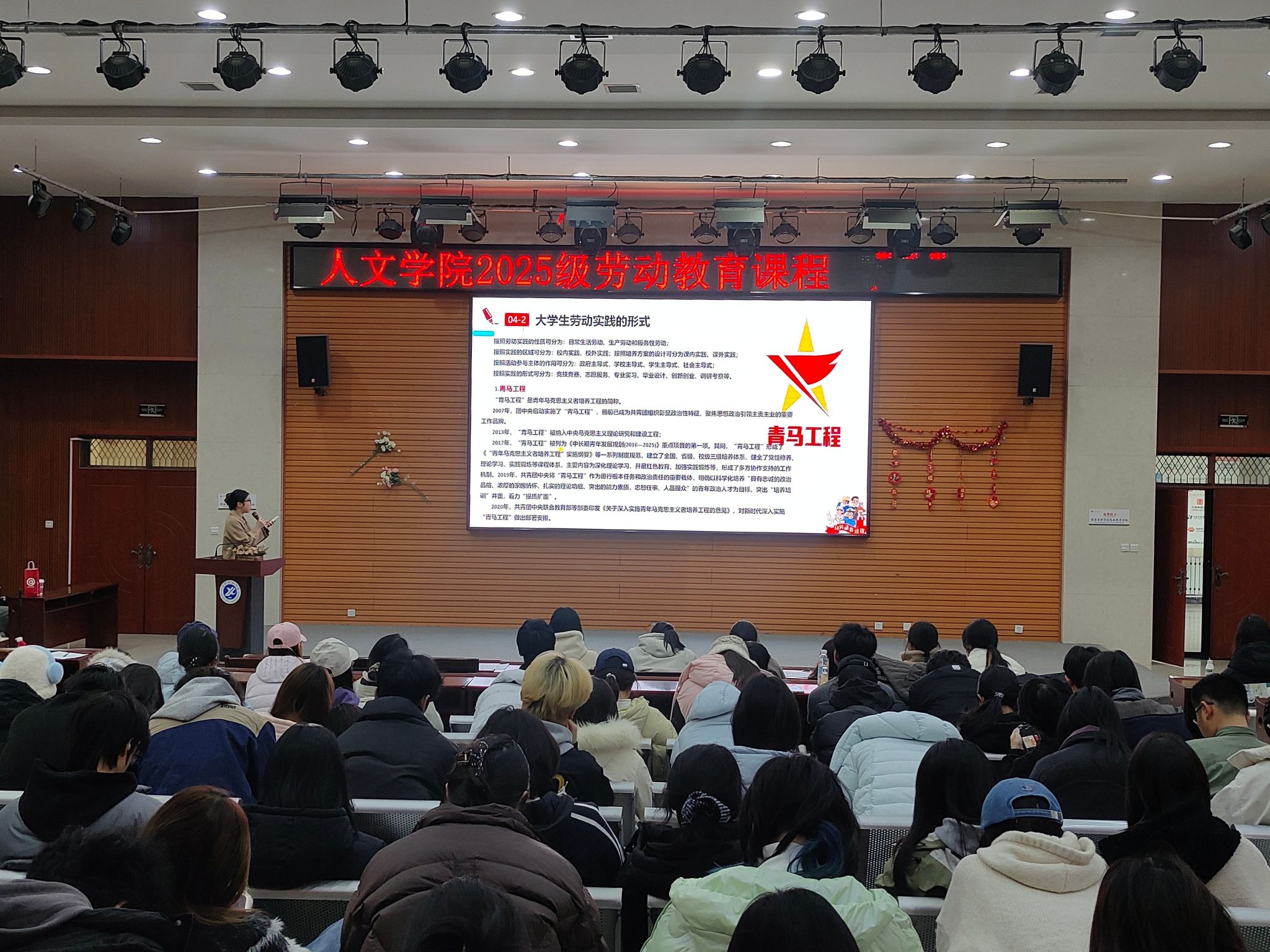 为推进学院学风建设及班级建设,通过“劳动教育”全面育人、综合育人、实践育人,促进学生全面发展,12月29日,人文学院在崇文楼118多功能会议室举办劳动教育理论课暨假期安全教育年级大会。本次活动由2025级辅导员张馨元主讲,全体2025级学生参加。