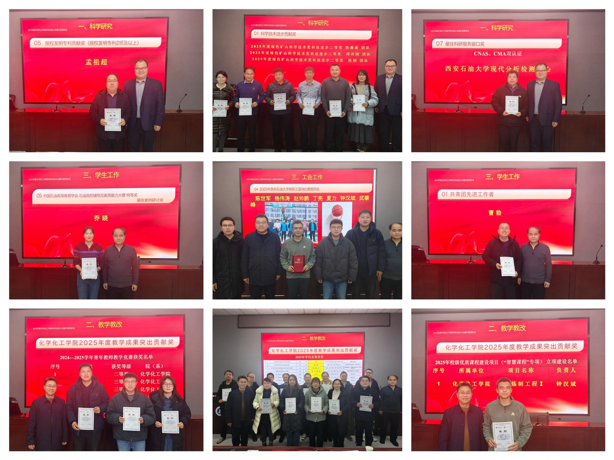 大会第五项为2025年度表彰环节。在热烈的掌声中,学院对过去一年在学科建设、科学研究、教育教学、学科竞赛、招生就业、工会活动、校企合作、校友工作以及学生管理服务等方面取得突出成绩、作出重要贡献的教师进行了表彰。