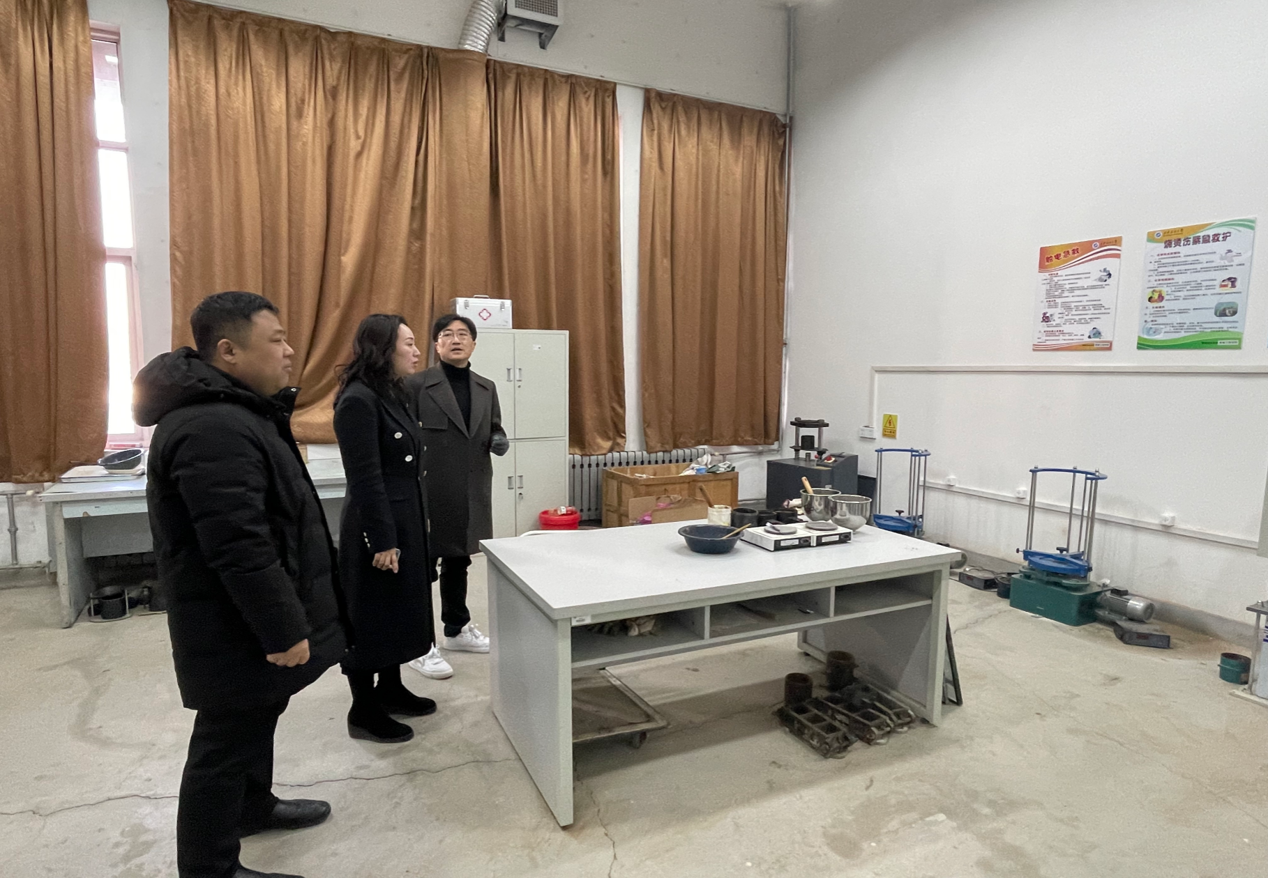 2025年12月25日,学院党委书记贾莉娜、党委副书记高亮、副院长崔莹带领实验室安全检查组,对学院所属本科教学实验室开展全面、细致的安全隐患大检查。检查组重点围绕消防设施完好性、水电安全状况、特种设备使用及日常管理等方面进行了深入排查。检查过程中,院领导详细查阅了实验室日常运行记录、仪器使用登记等情况,强调实验室教师必须时刻紧绷安全弦,严格执行国家及学校实验室安全管理规定,定期开展安全隐患自查自纠,做到责任到人、管理到位。