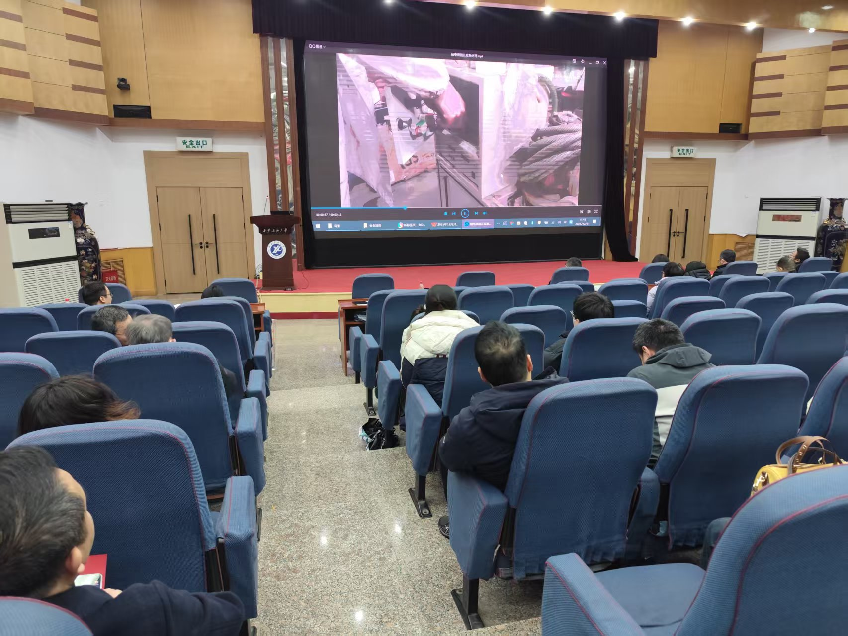 为进一步巩固检查成效,强化全院教职工特别是实验室管理人员与使用人员的安全责任意识和防护能力,学院于2025年12月31日组织全院教职工开展了实验室安全防护专题宣传教育活动。活动结合具体案例,对实验室常见火灾风险和用电安全开展专项宣教。通过本次专项宣传教育活动,全院教职工对实验室安全管理有了更深刻的理解,安全红线意识和底线思维得到进一步强化。