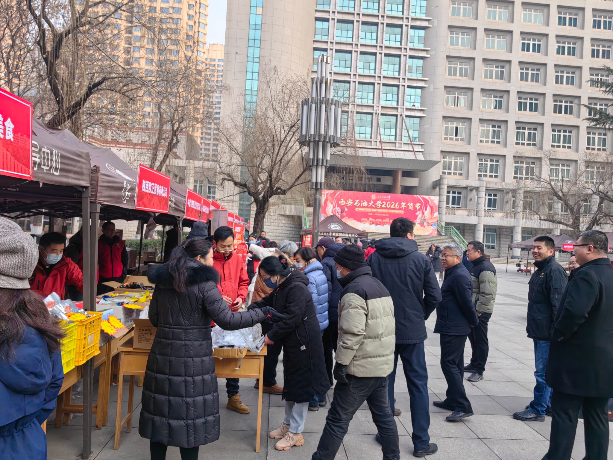 岁末寒意浓,校情暖人心。为深入落实校党委“以教职工为中心” 的发展理念,将 “幸福西石大” 建设要求转化为看得见、摸得着的民生福祉,1 月23日,由校工会、后勤处、离退休工作处、石大资产经营公司联合承办的2026 年春节教职工专属年货节在beat365雁塔校区圆满举办。校党委副书记程永清,副校长张骁勇、赵健等校领导亲临现场巡展,与教职工亲切互动,共品年味、共话发展。本次活动以“品质优、价格惠、服务暖、文化浓” 的鲜明特色,成为校党委心系教职工、服务教职工的生动实践。