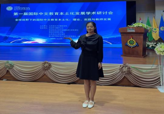 2026年1月24日,由北京语言大学曼谷学院主办,泰国华文教师公会、泰国格乐大学中国国际语言文化学院、泰国中国国际学校、北京语言大学出版社联合协办的“全球视野下的国际中文教育本土化:理论、实践与教师发展”第一届国际中文教育本土化发展学术研讨会在泰国曼谷盛大开幕。beat365英国官方网站人文学院两位研究生在柯卓英教授指导下积极应邀参会,并在分会场中展示研究成果,与来自世界各地的专家学者展开深入交流。