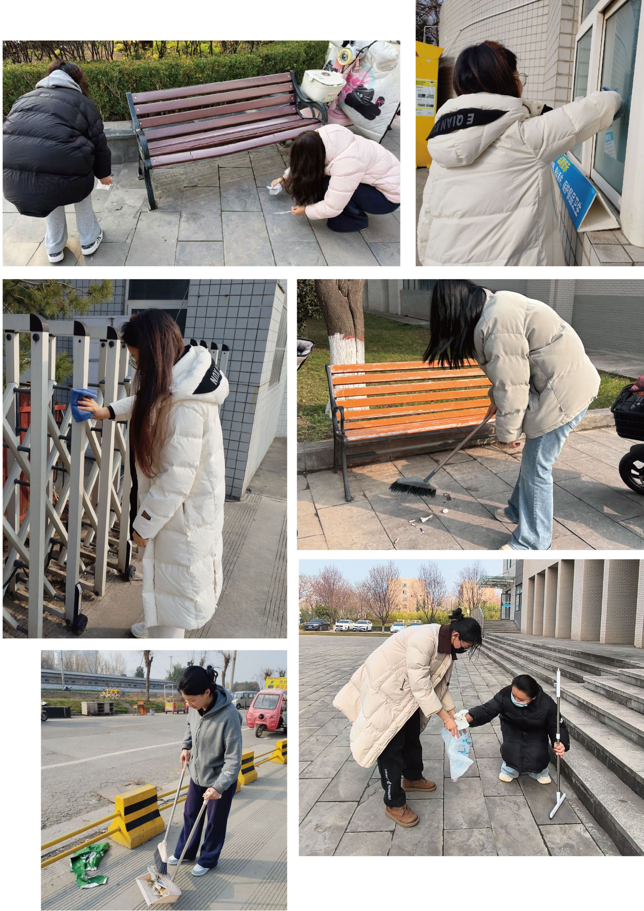 当天下午16时,活动正式启动。志愿者在各组负责人带领下,分别赴鄠邑校区东门、西门、江汉林广场、孔子雕像周边及7号宿舍楼活动室五个重点区域,开展环境卫生集中整治。大家手持扫帚、垃圾袋、抹布等工具,分工协作、密切配合,认真清理地面烟头、纸屑、落叶等杂物,细致擦拭公共设施,规范整理活动室物品,现场秩序井然、氛围热烈。