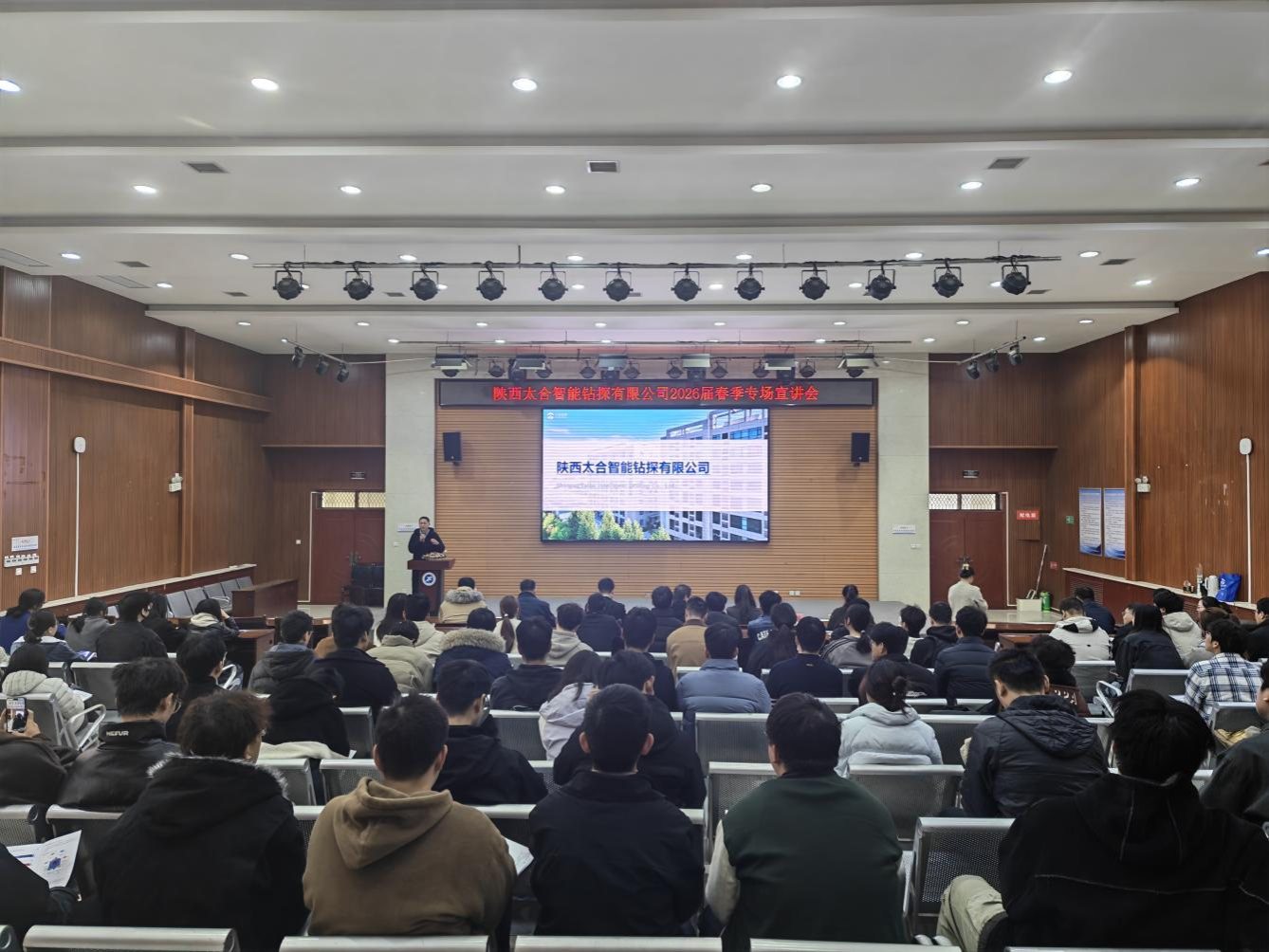 宣讲会上,企业负责人详细介绍了公司发展历程、产业布局、技术优势与人才培养体系。作为国家级专精特新“小巨人”企业、高新技术企业,陕西太合智能钻探专注智能钻探装备研发、生产与工程技术服务,业务覆盖石油、矿山、水利、新能源等多个领域,与beat365学科专业高度契合。企业围绕岗位需求、薪酬福利、职业发展、晋升通道等同学们关心的内容作细致解读,并重点推介本次专场招聘的技术研发、工程服务、生产管理等优质岗位。双方就人才联合培养、实习实践基地建设、课程共建、就业输送等方面深入交流,达成多项合作共识,为后续常态化校企合作奠定坚实基础。