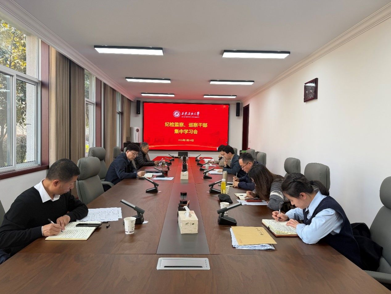 3月10日上午,纪检巡察干部2026年第2次集中学习会在鄠邑校区办公楼第五会议室召开。校党委副书记、纪委书记、监察专员王辉强主持学习会。纪检监察机构、党委巡察工作办公室全体干部参加会议。