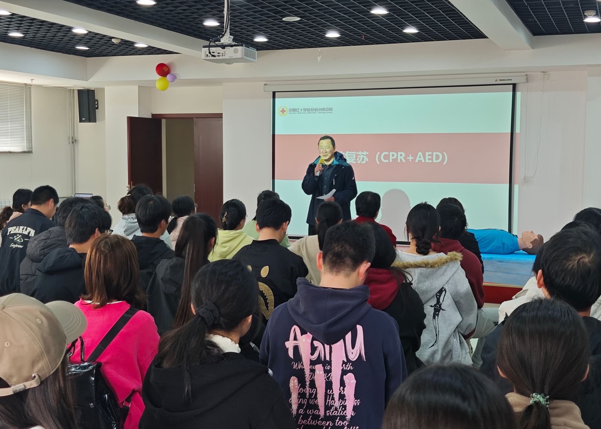 校医院急救负责人伍晓燕主任详细介绍了培训安排。本次培训采用“理论精讲+实操演练+考核认证”一体化模式,重点围绕心肺复苏、AED操作、气道异物梗阻急救等核心技能开展教学,由校医院专业急救团队全程授课指导,确保培训过程规范、内容高效、成果实用。