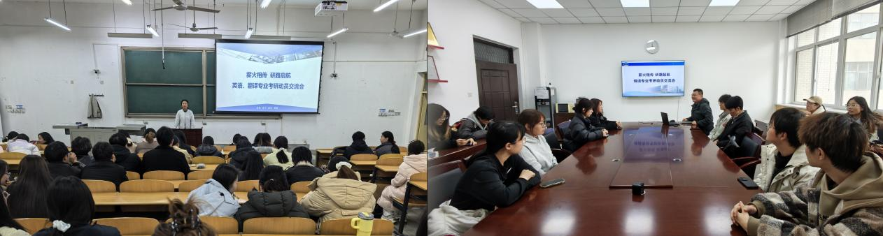 为助力学生明晰考研方向、掌握备考方法,破解备考困惑,营造勤学善研、互帮互助的优良学风。3月19日,外国语学院精准对接不同专业学生需求,分场次举办“薪火相传,研路启航”考研动员交流会。其中,英语、翻译专业专场在B114教室举行,俄语专业专场在崇文楼314会议室同步开展,年级辅导员及各专业备考学生参加了本次活动。