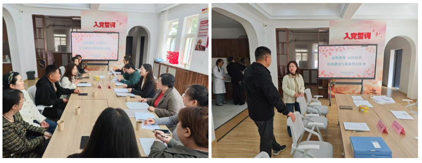 本次检查聚焦场地建设、设施配备、师资筹备、安全管理及服务方案等核心环节。检查组实地查看托班筹备场地,细致核验空间布局、功能分区及安全防护措施,听取幼儿园关于托班建设工作的汇报,查阅相关资料,并就场地规划、制度建设、卫生保健、课程设置等提出针对性指导意见。