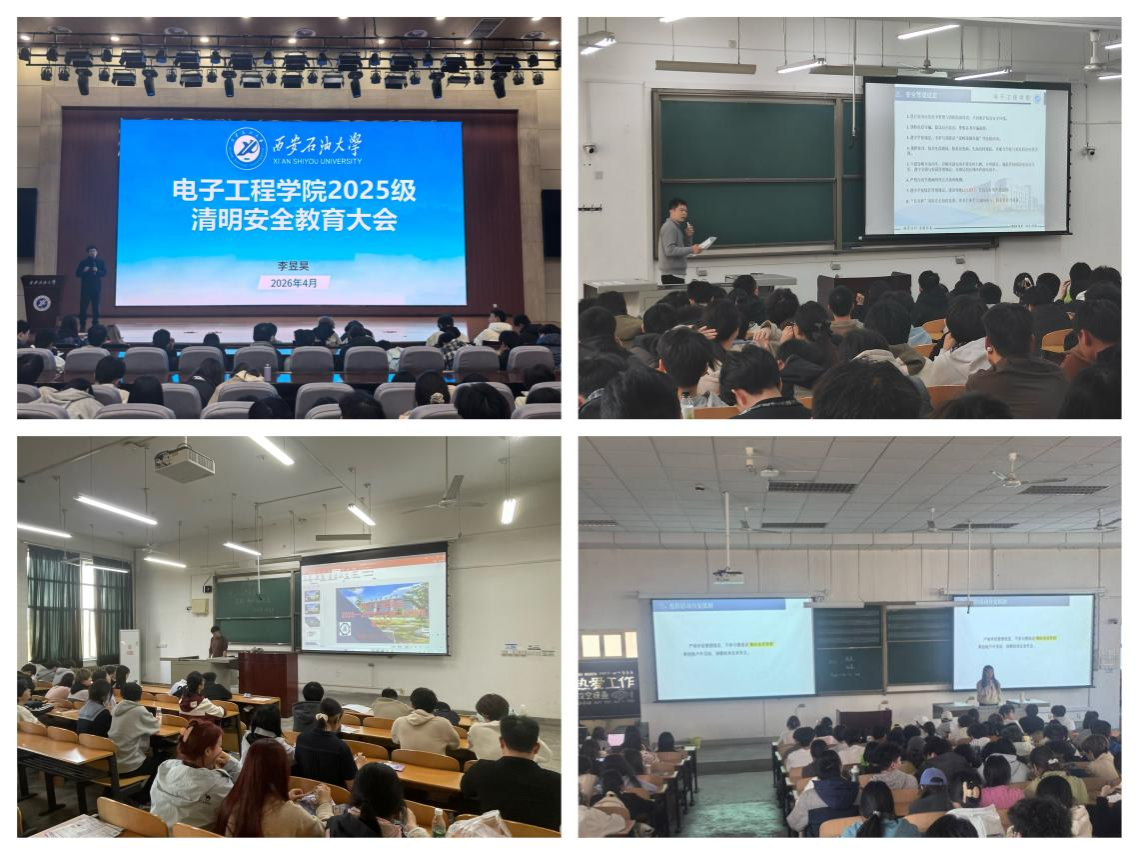 为深化校园安全责任意识,铸牢学生安全防线,近日,电子工程学院以年级大会、主题班会等方式开展了清明假期安全教育。
