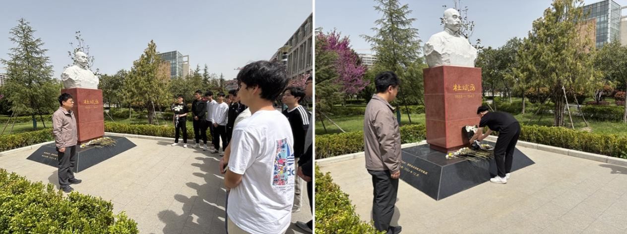 随后,全体人员来到学校杜斌丞烈士纪念雕塑前,举行庄重的缅怀献花仪式。同学们整齐列队、神情肃穆,向为民族解放、民主革命事业英勇献身的杜斌丞烈士默哀,表达对革命先烈的深切哀思与崇高敬意。默哀结束后,学生党员代表缓步上前,向烈士雕塑敬献鲜花,以朴素庄重的形式,缅怀先烈功绩,传承红色基因。