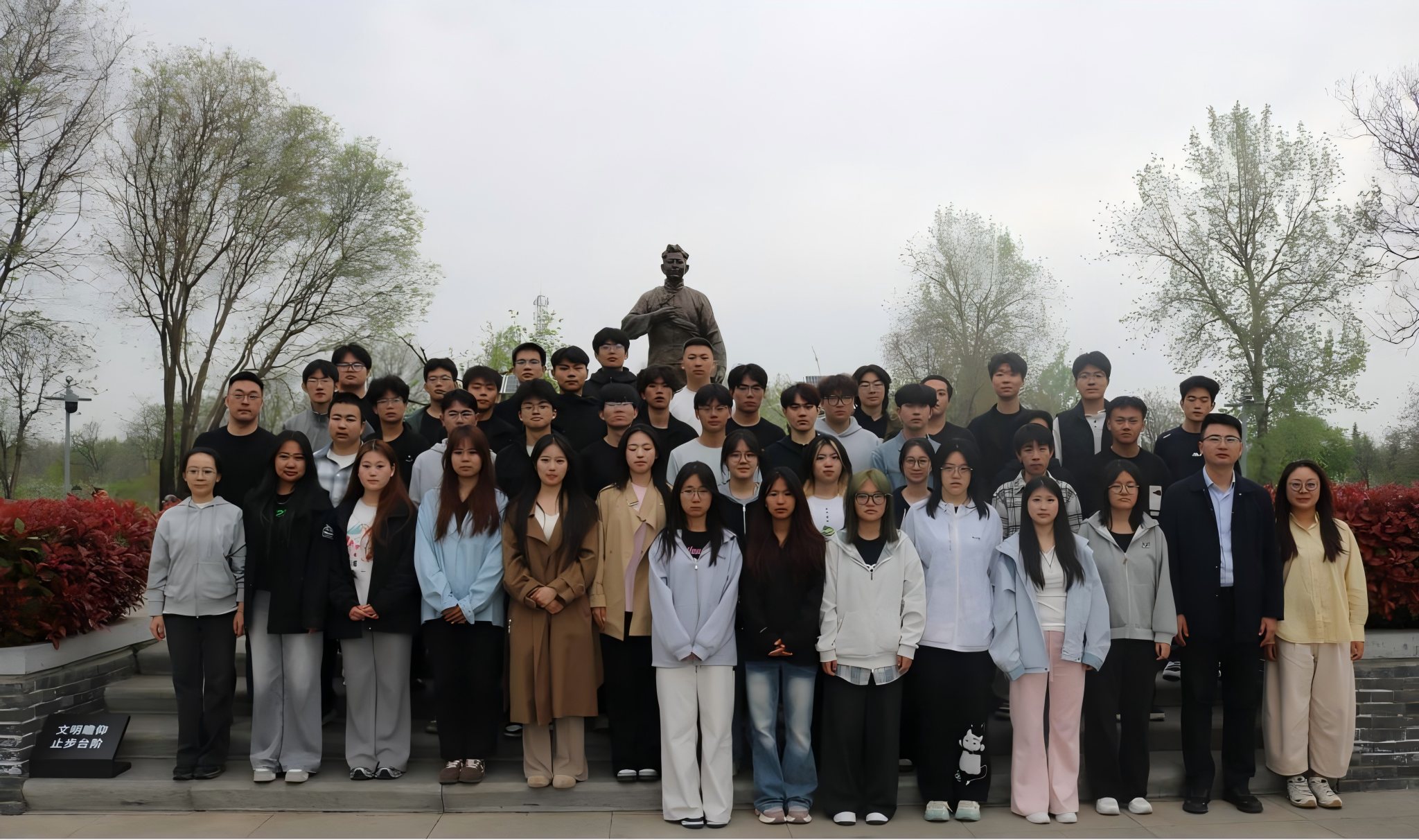 在习仲勋陵园,全体师生庄严肃立,向习仲勋同志雕像鞠躬致敬,表达对革命先辈的深切缅怀和崇高敬意。随后,师生们走进习仲勋故居,仔细观看展品与史料,从朴素的院落与陈设中,深刻领会习仲勋同志“党的利益在第一位”的坚定信念,以及“天天战斗,天天快乐;奋斗一生,快乐一生”的革命精神。