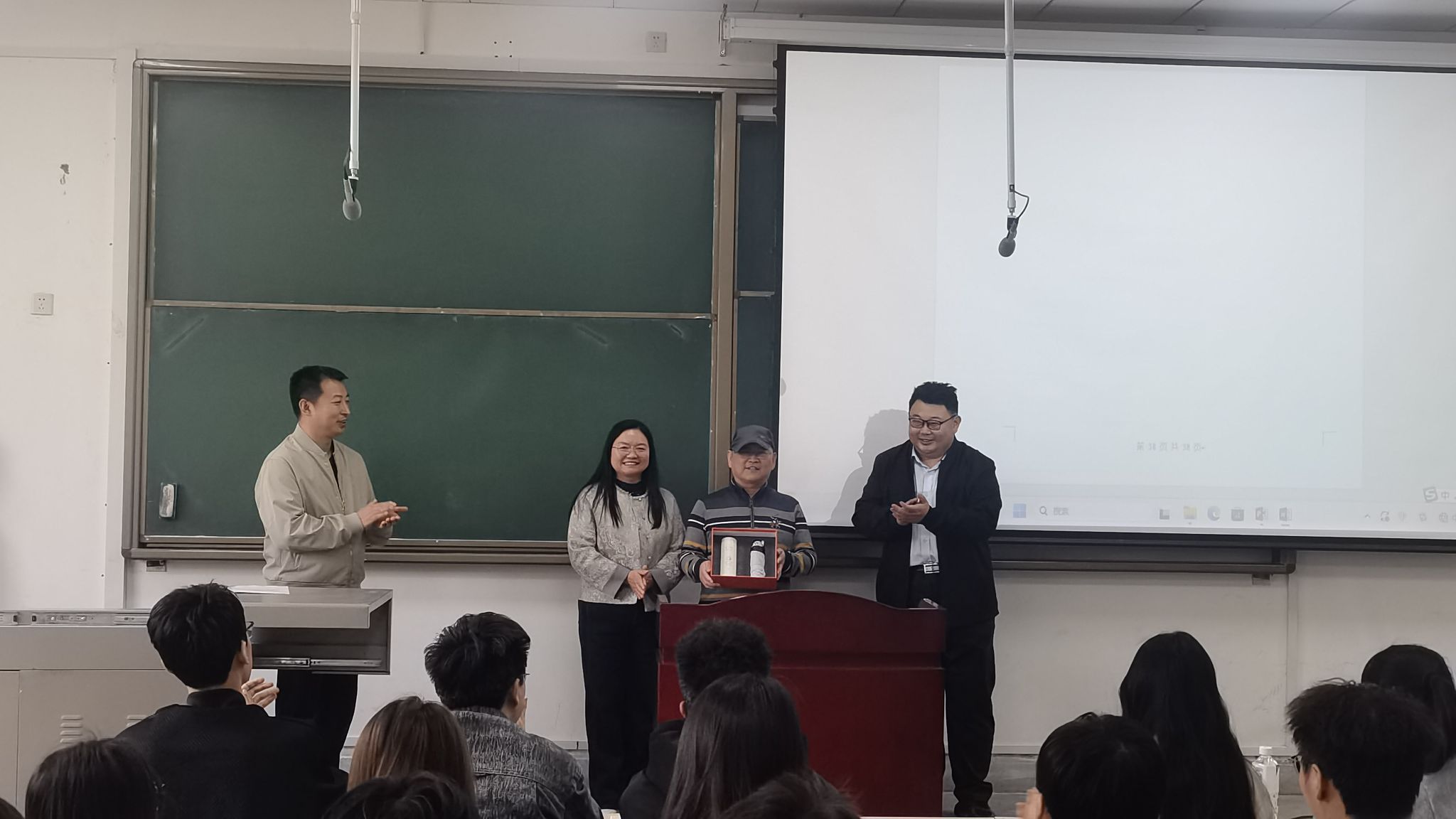 全体学生起立鞠躬,齐声高呼:“阮老师,您辛苦了。”这场简朴而隆重的活动,不仅是对一位荣休教授数十载教书育人的深情致敬,更是一堂生动的思政大课。