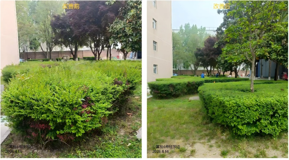 5.鄠邑校区学生公寓楼6号楼东边绿篱修剪;