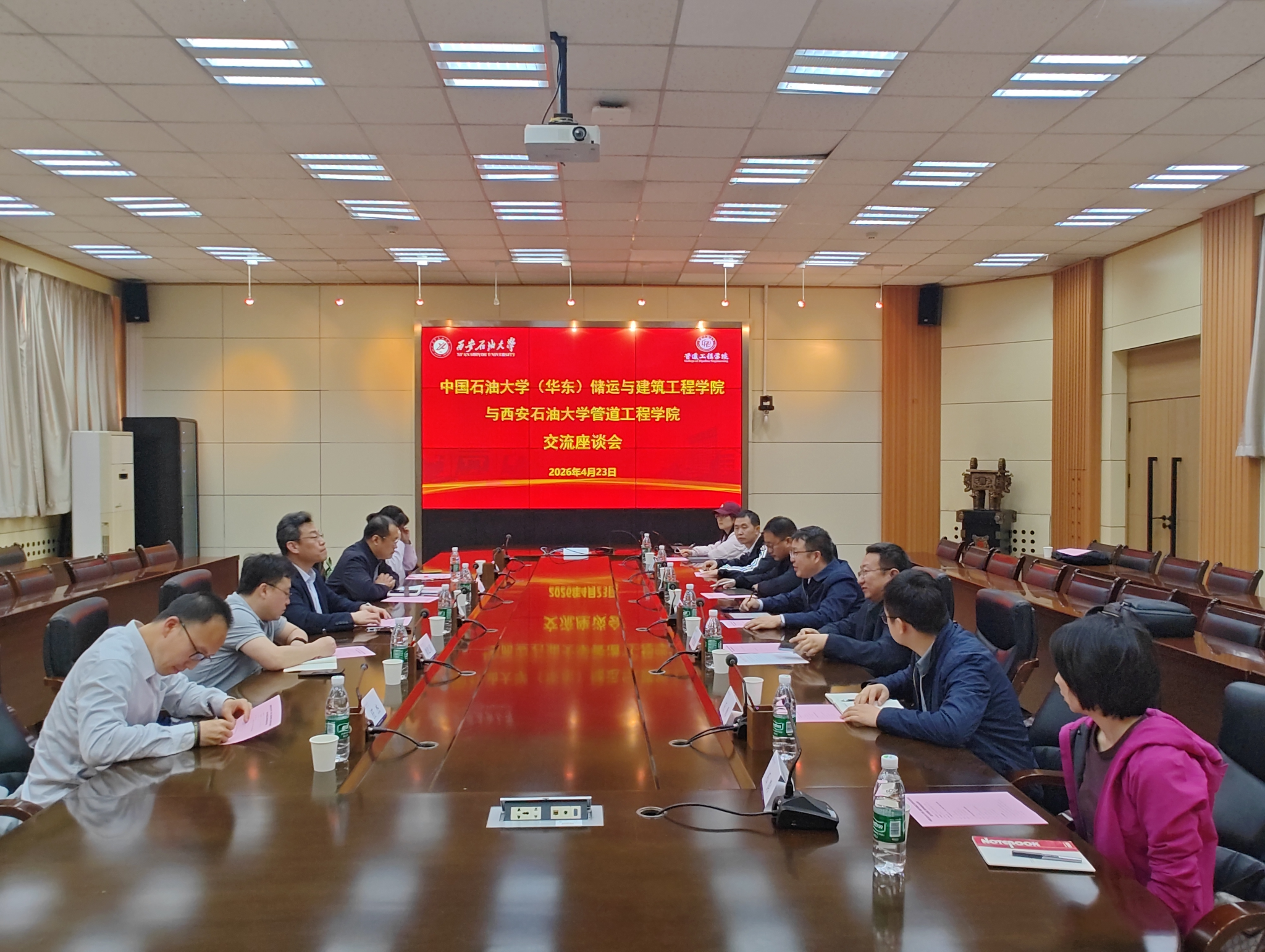 4月23日下午,中国石油大学(华东)储运与建筑工程学院院长刘刚、教务处副处长杨东海一行来beat365管道工程学院交流座谈,会议在雁塔校区第二会议室召开,管道工程学院院长蒋华义主持会议。