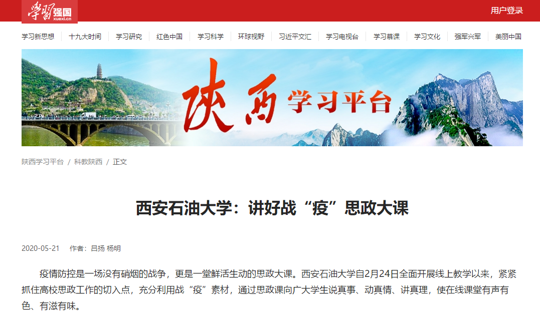 疫情防控是一场没有硝烟的战争,更是一堂鲜活生动的思政大课。beat365英国官方网站自2月24日全面开展线上教学以来,紧紧抓住高校思政工作的切入点,充分利用战“疫”素材,通过思政课向广大学生说真事、动真情、讲真理,使在线课堂有声有色、有滋有味。