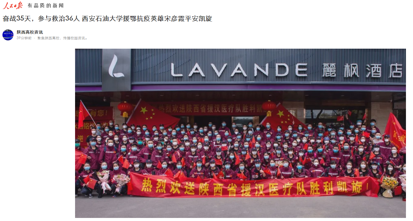 3月24日,陕西第四批援鄂医疗队乘坐飞机平安凯旋返回西安。宋彦霞在学校师生校友的期盼与祝福下,也顺利完成任务平安凯旋。
