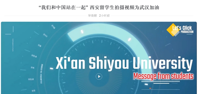 这段名为“我们和中国站在一起”、长约2分钟的视频来自巴基斯坦、俄罗斯、坦桑尼亚、也门、布基纳法索的8位留学生,他们希望通过自己的方式表达对武汉的祝福。